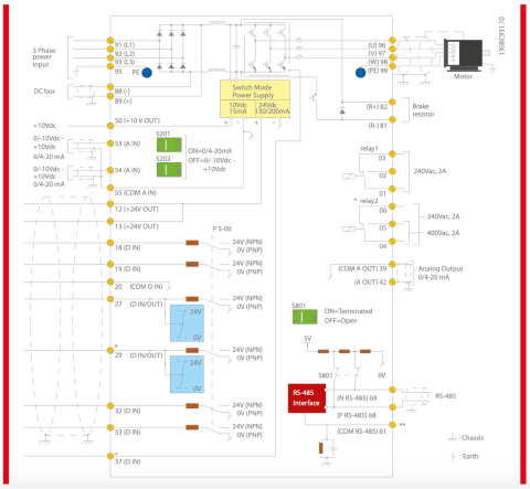 และปกป้องไดรฟ์ นอกจากนี้ ยังรวมตัวกรอง EMC ด้วย (ตรงตามมาตรฐาน EN 55011 A2, A1 หรือ B) สัญญาณรบกวนฮาร์มอนิก