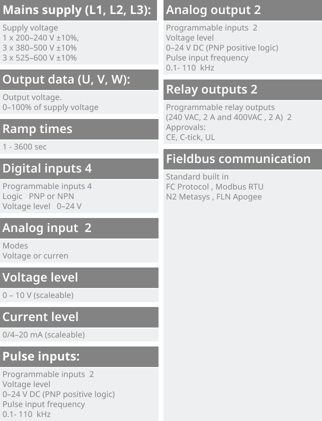 เหมาะสมเพื่อการทำงานขั้นพื้นฐานที่แข็งแกร่งของพัดลม ปั๊ม และคอมเพรสเซอร์ มีฟังก์ชันในตัวที่ช่วยลดต้นทุนเริ่มต้นและเพิ่มผลผลิต ไดรฟ์ที่ใช้งานง่ายนี้เป็นไดรฟ์ที่มี