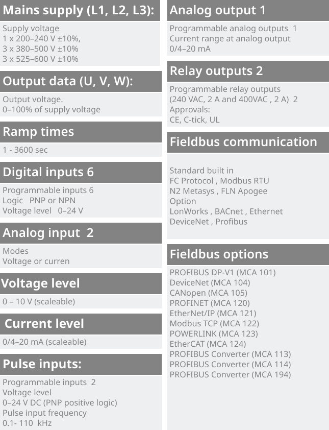 • 3 x 525-690 V…1.1 kW – 1.4 MW